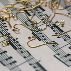 3. Каждая серьга — это поочередная сборка из 3 элементов: две детали на пинах и швенз. Зафиксируйте их между собой: проденьте пин в отверстие предыдущего компонента и сформируйте крючок тонкогубцами. Готово!