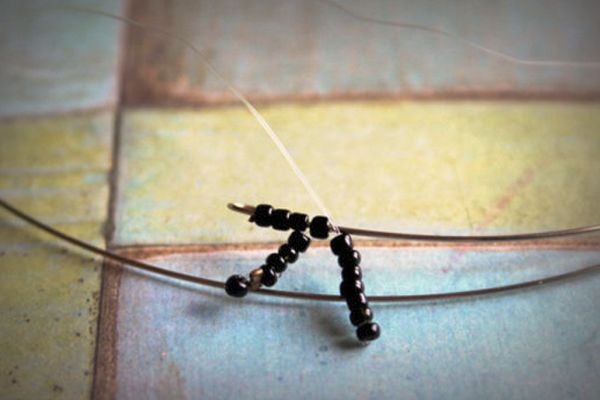 9. Когда леска заканчивается, мы снова берем зажимную бусину и закрепляем.