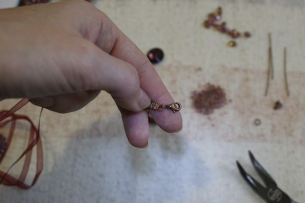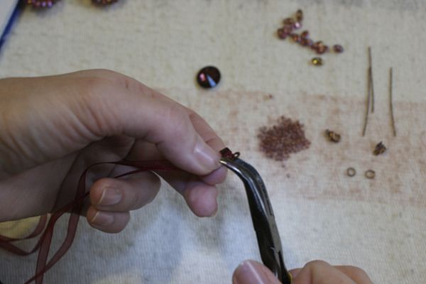 29. На швензы нанизываем по 6 бисеринок, при желании их можно подклеить. Присоединяем швензы к петельке на наших кабошонах.