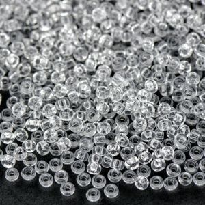 • 1. Отрезаем 10-15 см. лески. Нанизываем четыре маленькие бусинки, располагаем на середине.
