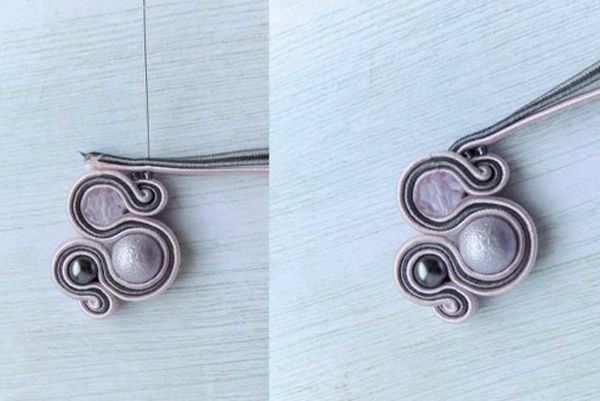 5. Лишние сутажные кончики отрежьте и место среза обработайте клеем.