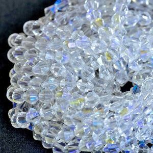 • 17. Теперь берем биконус Сваровски 6 мм оттенка White Opal (у меня в данной работе вместо биконусов Сваровски использованы чешские) и пришиваем их несколькими стежками