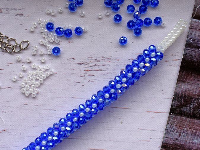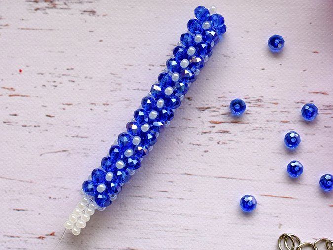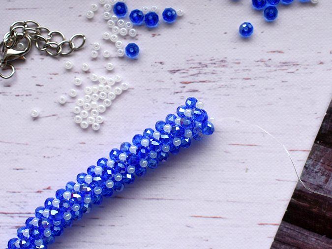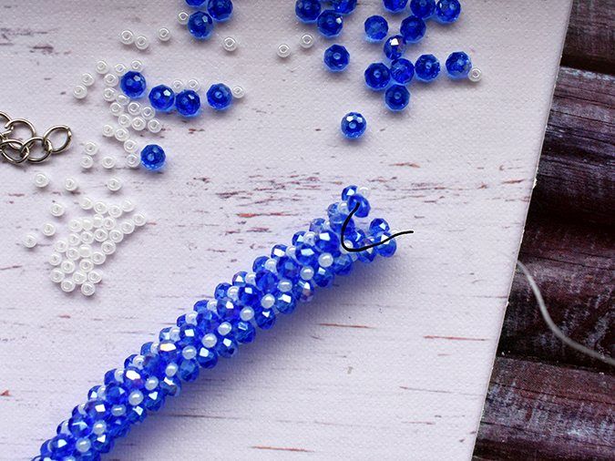 • 13. Плетем необходимое количество рядов с бисером и бусинами