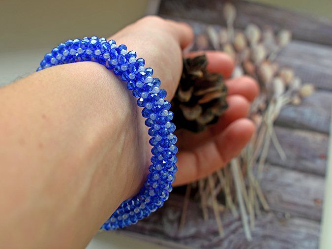 Браслет выполнен в технике ндебеле по кругу. С такой техникой можно много экспериментировать, меняя цвет, размер бусин.