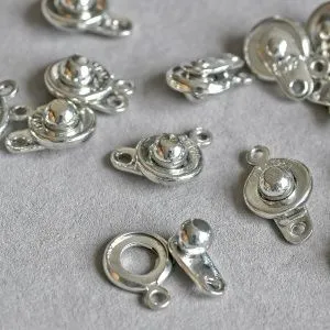 14. Последними двумя колечками крепим замочек, соединяя петли обоих браслетов.