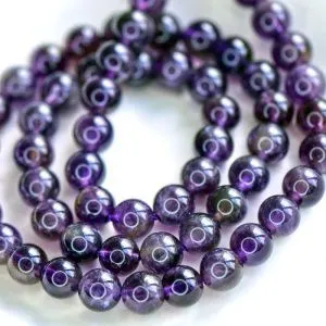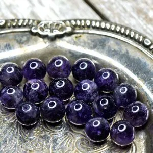 3. Металлические бусины располагаем между аметистами. Обратите внимание, бусины стараемся расположить на уменьшение. Собираем бусины между собой. Вторая часть браслета готова.