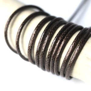 3. Закрепите нить на шнуре с помощью узла и начинайте нанизывать бусины, обвязывая нить вокруг шнура. В каждую бусину нить должна пройти дважды – снизу и сверху.