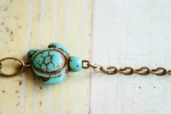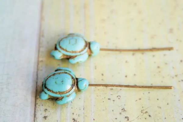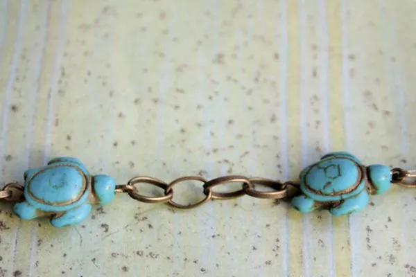 6. Для этого можно разжать либо звено цепи, либо петельку, а потом зажать. Берем следующую черепаху и пин, и снова подрезаем пин, делаем колечки и присоединяем её к цепи. Обратите внимание, что все черепахи идут в одном направлении