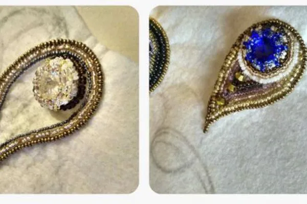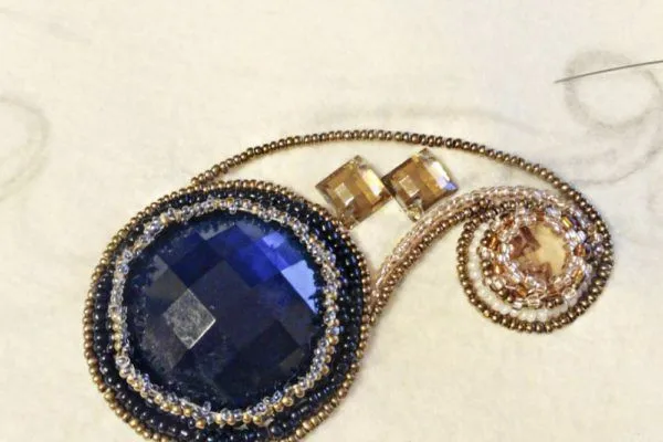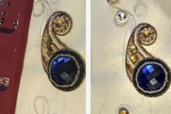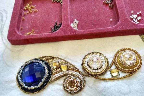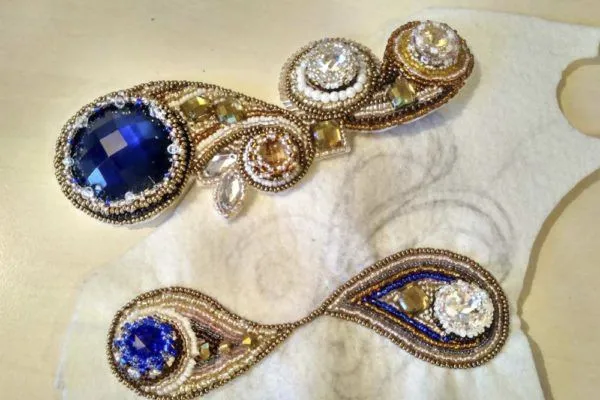 • 12. Затем, так же как мы уже делали, вышиваем два основных элемента на второй половине украшения.