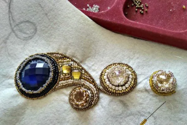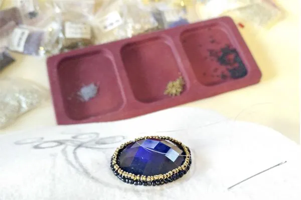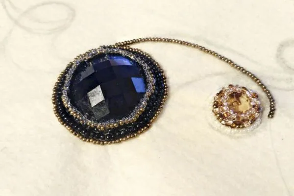 • 4. Далее я сделала третий ряд, серого цвета и закончила на этом, убедившись что бисерины хорошо держат кабошон на месте.