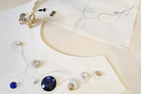 • 10. Оплетаем риволи согласно нашим наброскам и пришиваем их на свои места.