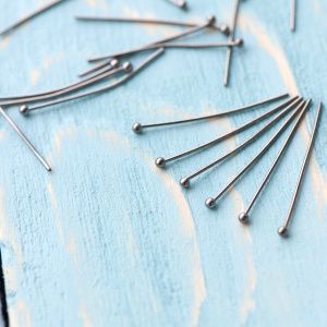 • 1. Берем тоненький пин, нанизываем на него бусину,