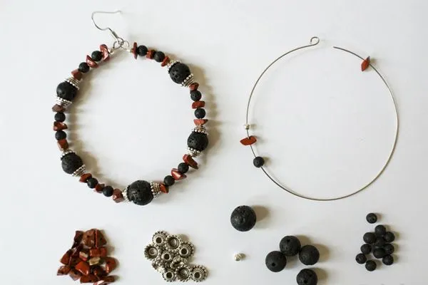 3. Нанизываем все бусины и шапочки для бусин согласно фото.