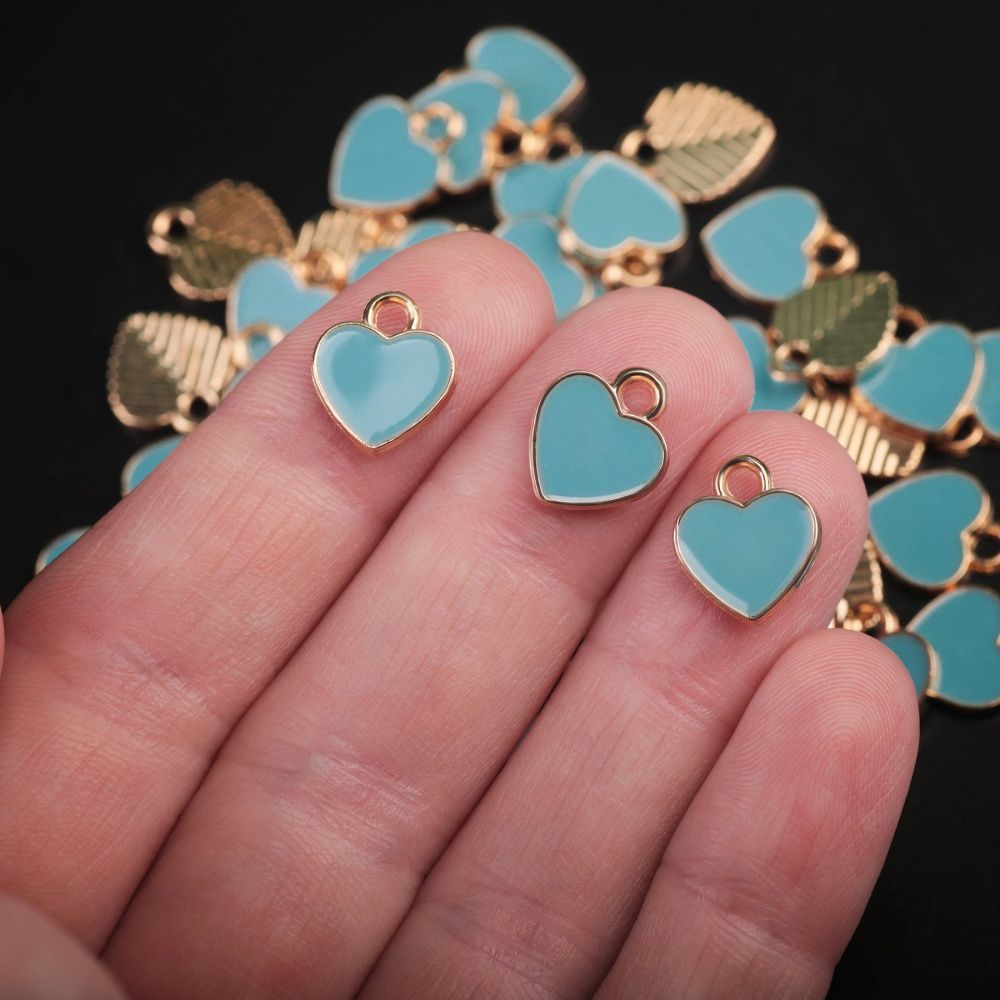 подвеска металл "сердечко", эмаль, цвет голубой, 12x10x2 мм
