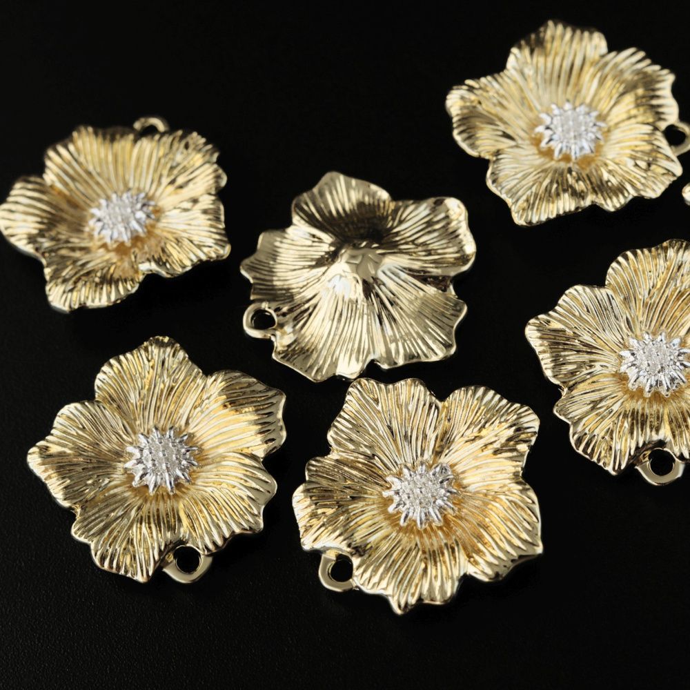 подвеска металл "цветок шиповника", цвет светлое золото, 26x25x5 мм